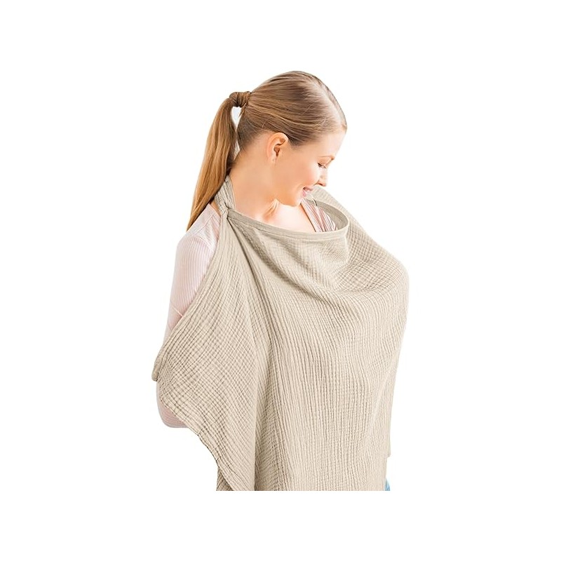Konssy Muslin Nursing Cover for Baby Breastfeeding, Breathable 100% Cotton Breastfeeding Cover with Rigid Hoop for Mother Nursing Apron, Multi-use Carseat Canopy (Summer Wheat)