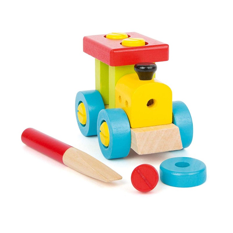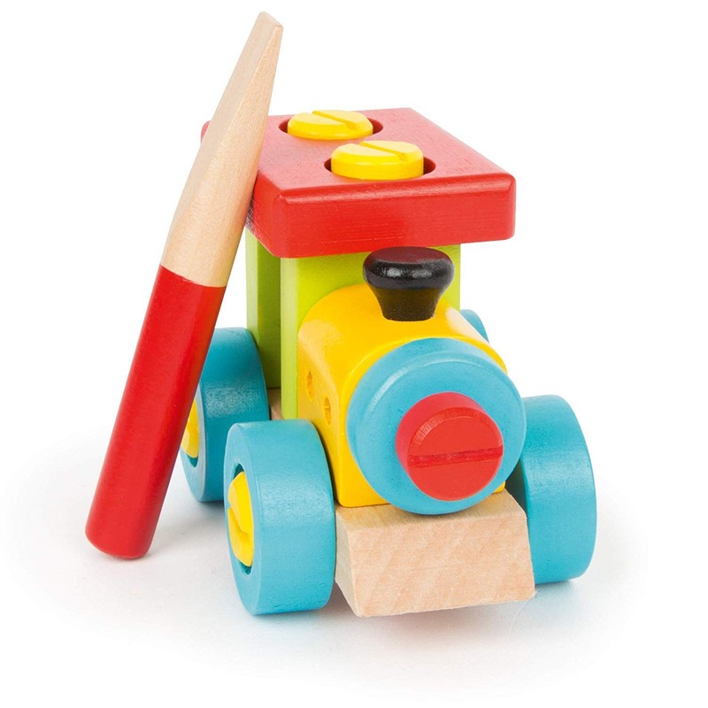 Konstruktionslok aus Holz, FSC® 100%-zertifiziert, bunte Holzlokomotive in sechs kontrastreichen Farben zum eigenständigen Zusammenbauen, ein schönes Geschenk für kleine Lokomotiven-Fans ab 3 Jahre