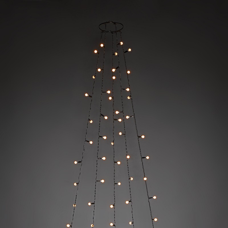 • In the first step, simply place the ring over the tree top and then distribute the 5 strands with 30 diodes each decoratively in the branches. So all lights are immediately distributed in the tree. Now just connect the plug to the power and enjoy the festive sea of lights