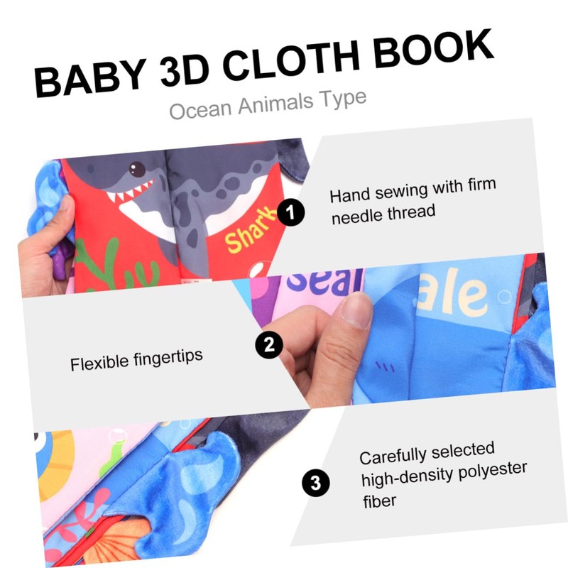 KONTONTY Educational Baby Plaything Soft Fabric Book 3D Ocean Animals Early Learning Preschool Book Baby Cloth
