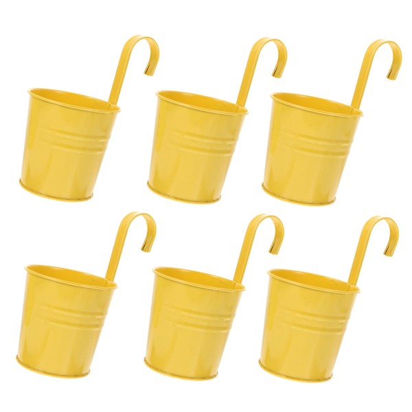 KONTONTY Set of 6 Hanging Flower Buckets Made of Pewter Railing Planters Garden Pots Balcony Planter Flower Pot for Hanging Made of Iron Planter for Wall Mount Wall Basket System Balcony Basin