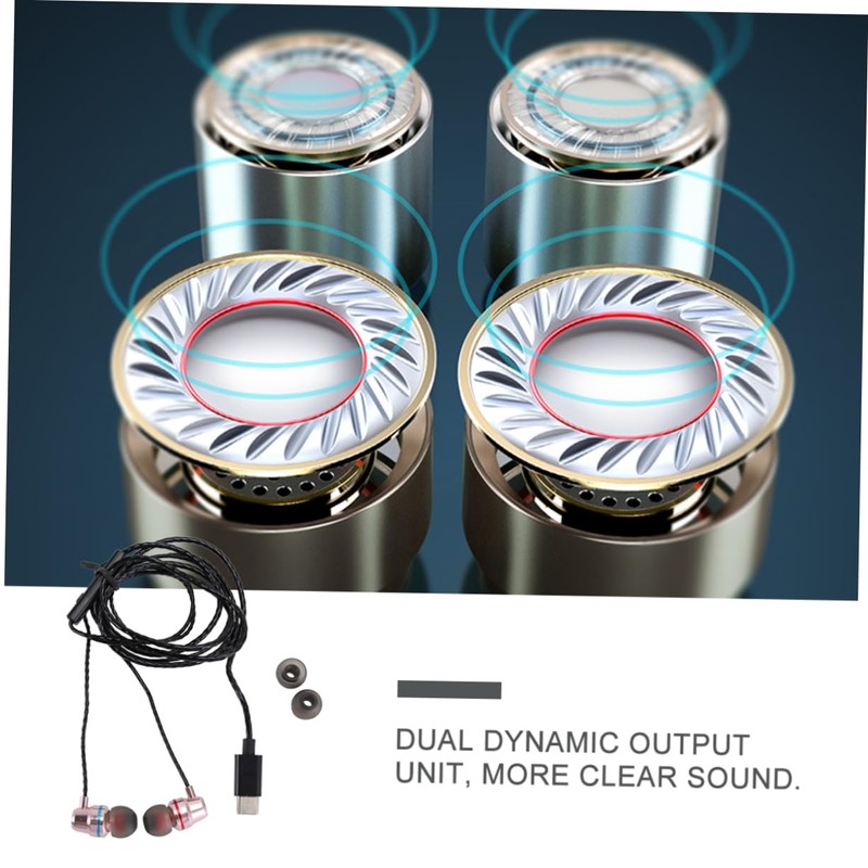 1 -C Headphones Hi-Fi Stereo In-ear Earphone Wired Sports Earbuds with Microphone Surround Sound Headset for Type and Other Devices (Rose Gold)(Random Packaging)