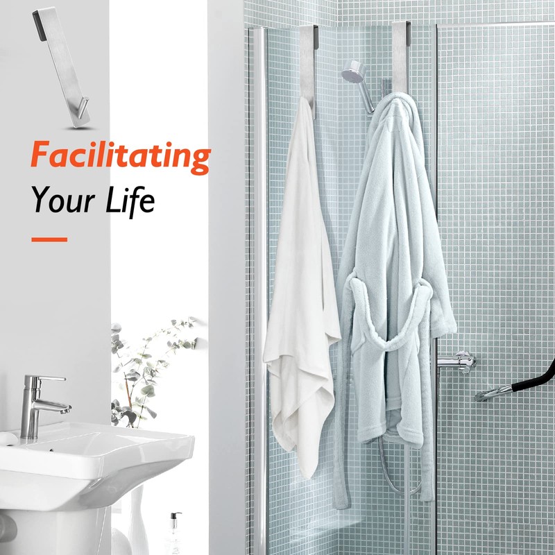 - 【NO SLIP AND NO SCRATCH】Door hook back covered with sponge pads, So it doesn't scratch the glass, Fit over the frameless glass shower, Never fall off and move, No slipping or clacking, Perfectly fit over the shower door