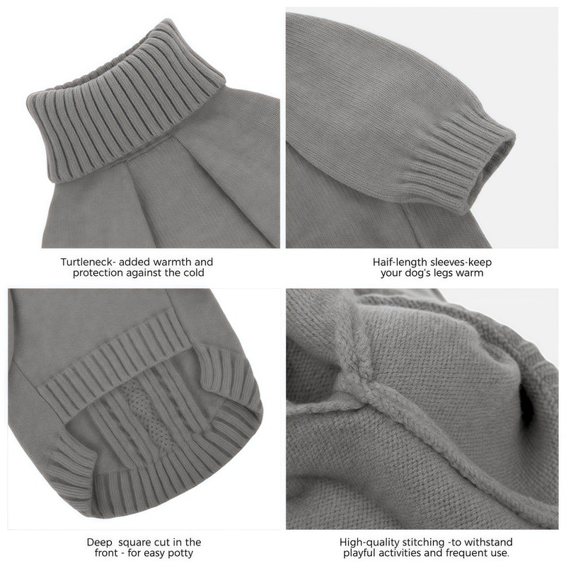 Unser Hundepullover ist der perfekte Begleiter für kalte Tage. Mit einem klassischen Zopfmuster und einem hohen Rollkragen bietet er nicht nur modischen Look, sondern auch optimalen Schutz vor Wind und Kälte.