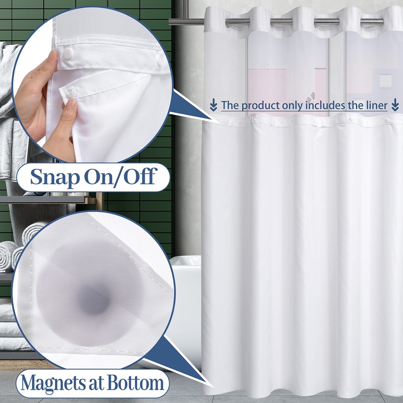 - Machine Washable & Removable: The shower curtain liner with a removable snap-in liner, easy to clean and to replace if it gets dirty. Machine washable.