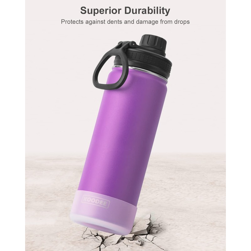 koodee Insulated Water Bottle 2 Pack-22 oz Stainless Steel Vacuum Metal Sports Water Bottle with Leakproof Spout Lid, BPA Free (Purple-Royal Blue)