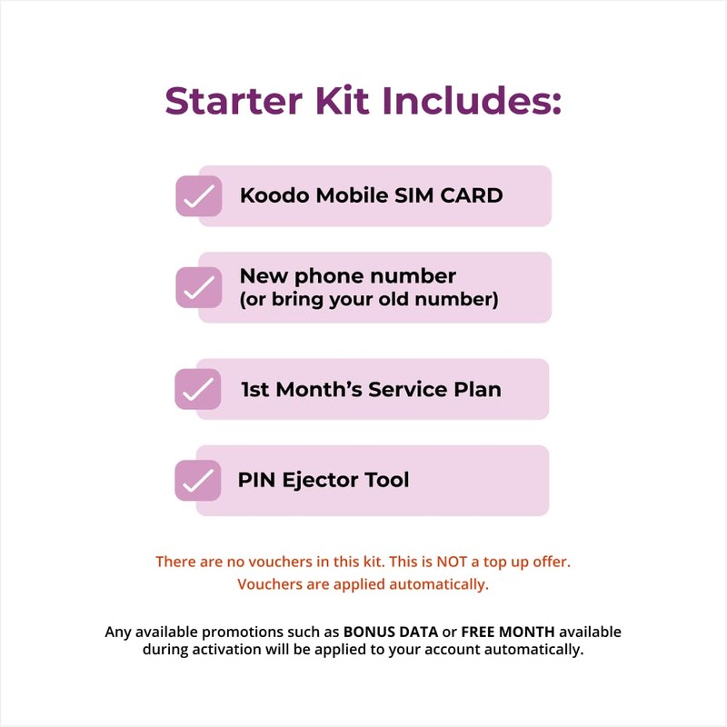 Koodo Mobile 4G LTE Prepaid 25$ SIM Card Starter Kit - Unlimited Talk Canada + 20 GB (4G Network) | 1 Month Prepaid Service Incl. | Pay as You go | Canada | Promotion