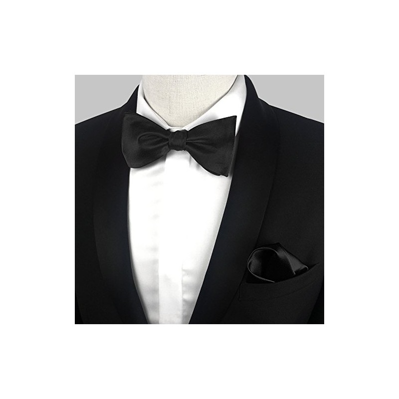 KOOELLE Mens Premium Silky Bowties Tuxedo Solid Colors Bow Ties & Pocket Squa...