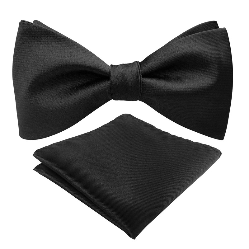 KOOELLE Mens Premium Silky Bowties Tuxedo Solid Colors Bow Ties & Pocket Square Set