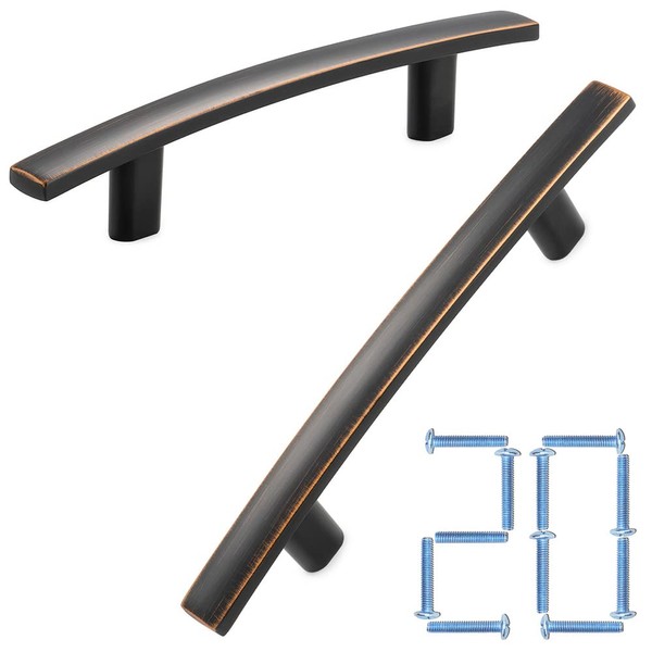 KOOFIZO 20-Pack Solid Curved Bar Cabinet Pull - Oil Rubbed Bronze Furniture Arch Handle, 3 Inch/76mm Screw Hole Center for Kitchen Cupboard Door, Bedroom Dresser Drawer, Bathroom Wardrobe Hardware