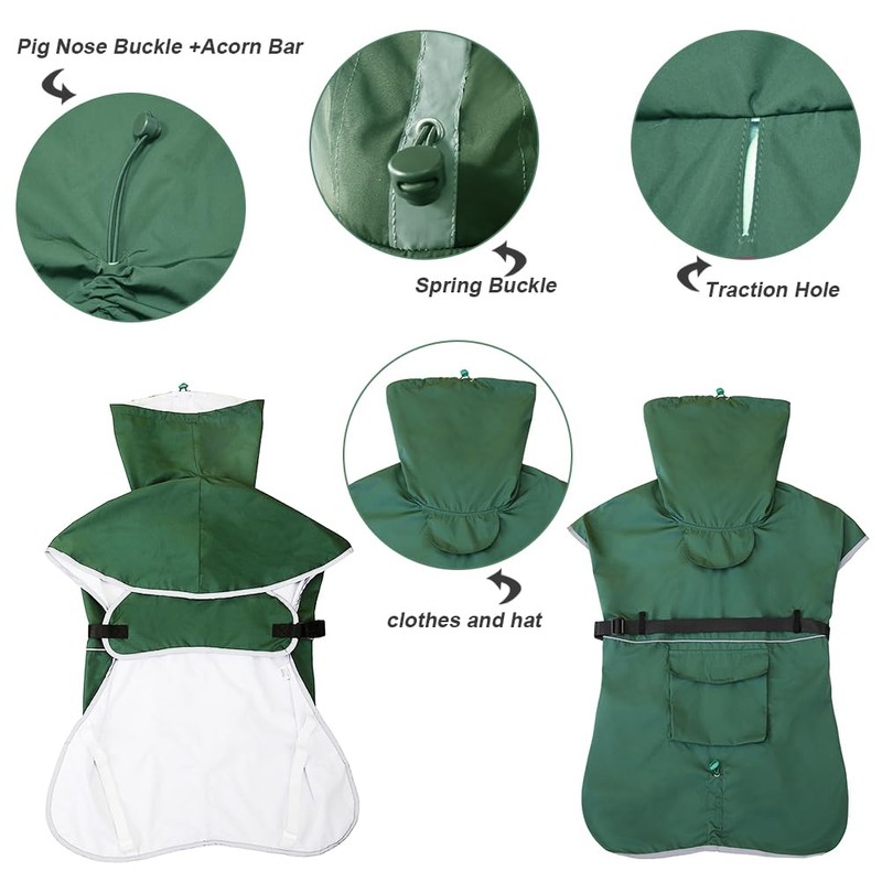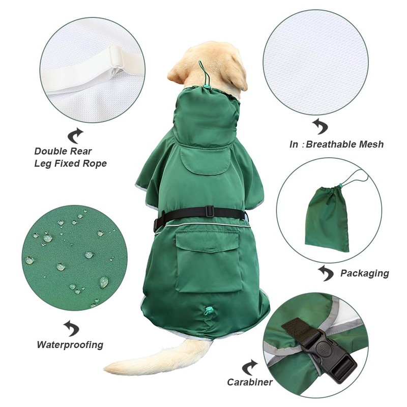 - Practieality Function: The koogal dog raincoat has 2 leg straps to put around the back legs as this will help keep the coat centered but also hold it in place so the wind can't blow it up if it's blustery out.