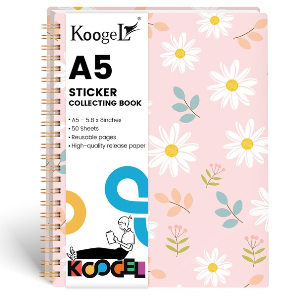 Koogel Sticker Collecting Book, Reusable Sticker Collecting Album Blank Sticker Storage Book 50 Sheets Release Paper for Sticker Keeper Holder A5 (Flower)