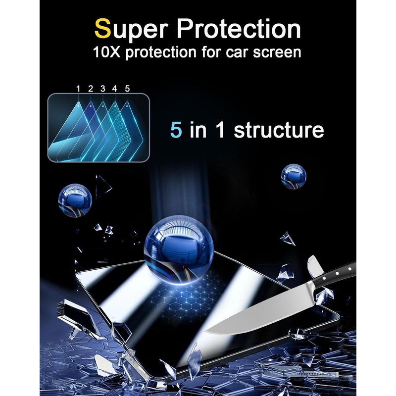 - 10X Protection: KOOGEN's screen protector is made from 9H tempered glass with advanced 5 in 1 structure,which can effectively protect your car touch screen from scratches, and bumps in daily use.