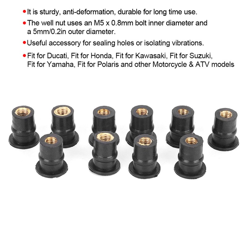 - WEIT VERBREITET: Gummi well mutter sind für die meisten Windschutzscheiben-, Karosserie-, andere Motorrad- und ATV-Anwendungen geeignet. Bitte überprüfen Sie vor dem Kauf Ihren Gewindetyp und Ihre Schraubengröß