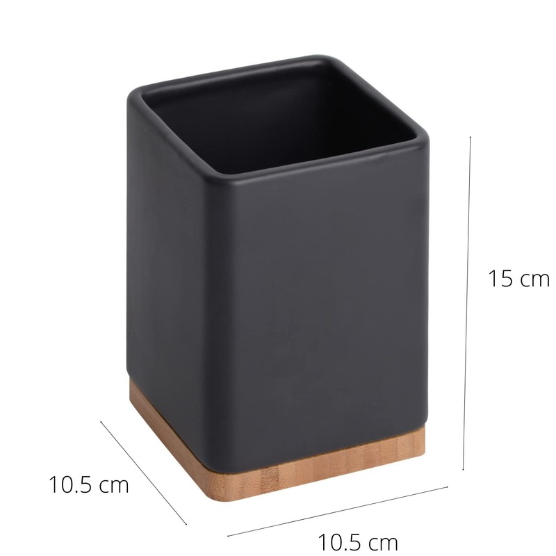 KOOK TIME Kitchen Utensil Holder - Utensil Holder Kitchen Made of Ceramic and Bamboo - Square Kitchen Aid Storage - Black - 10.5 x 10.5 x 15 cm