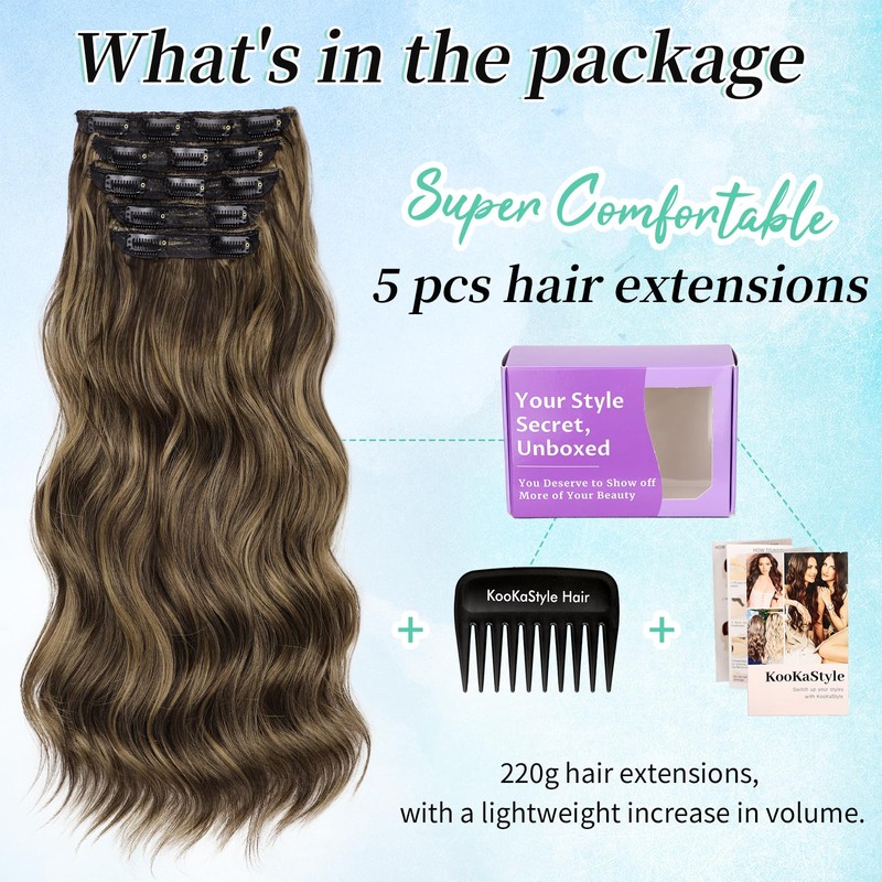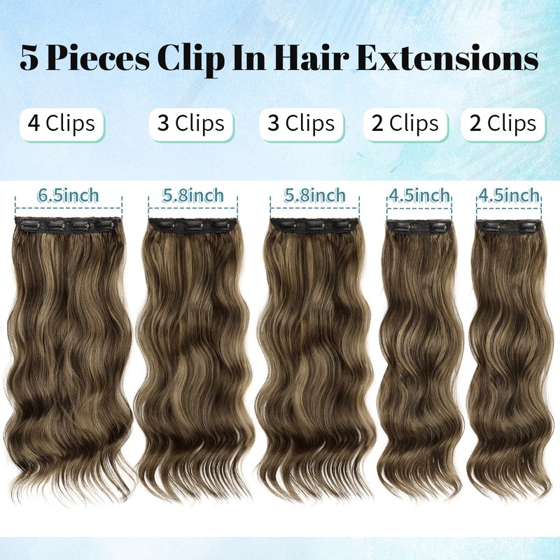 - 【Convenient Clip Design】:Clip in Hair Extensions Comes with 5 pieces, each fitted with a reliable clip. Easy to attach and detach, ensuring a secure fit throughout the day.