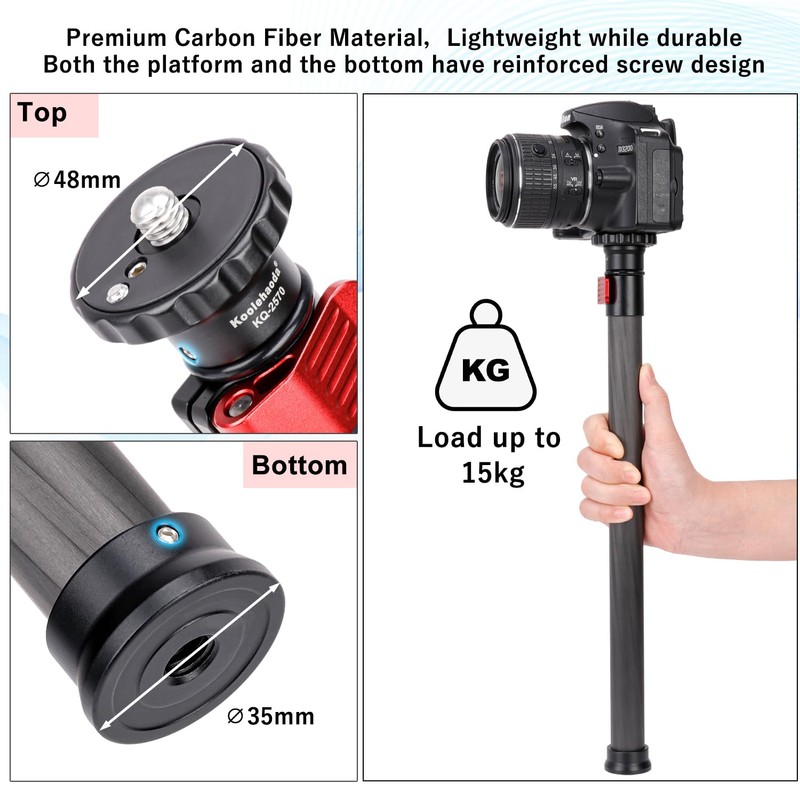 Koolehaoda Tripod Extension Pole, Center Column Extender 28" Carbon Fiber Tripod Extender Tube Telescopic Stick Rod with 1/4" to 3/8" Screw Compatible with Tripod/Gimbal/Camera, Max Load 33lb