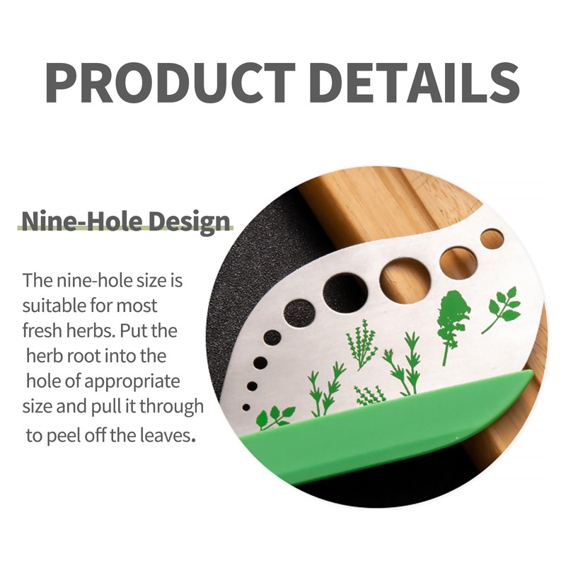 - Multifunctional design: This multifunctional leaf stripper has 9 holes of different sizes, suitable for a variety of fresh herbs such as basil, rosemary and mint. It can not only remove leaves, but also be used for cutting, saving time and energy.