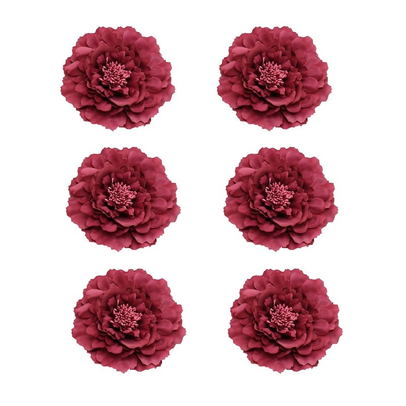 Koolgil Women's Bohemia Peony Flowers Hairpin Hair Clip Flower Brooch for Travel Party Festivals Set of 6 PF-11 (Burgundy)