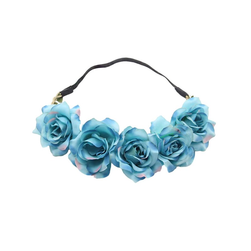 Koolgil Women's Bohemian Beach Simulation Rose Flower Headband for Party Travel Festivals (Blue)