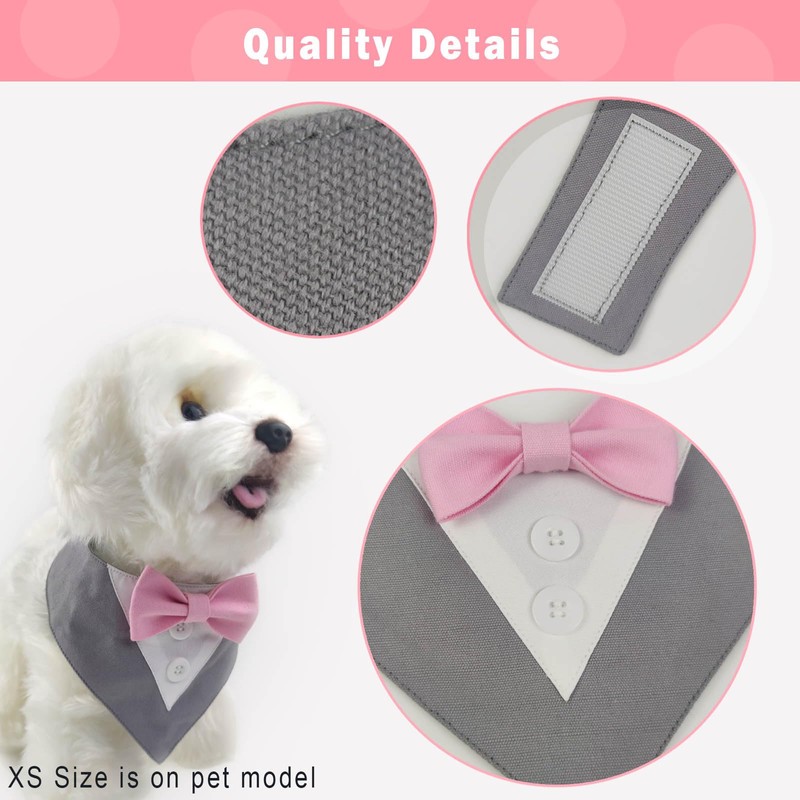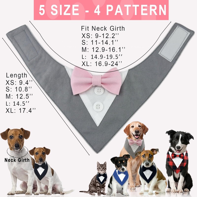 - Easy to Wear -- dog bowtie tux is designed with hook and loop fastener, convenient to take on/off, adjust bandana length to where your dog feel most comfortable.