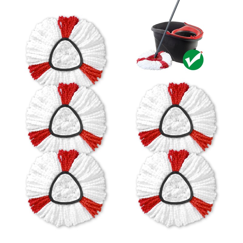 - [DURABLE & REUSABLE] The package includes 5 pack mop heads, which will last for one year use. The mop head can saves you time and money, but also gives you the most thorough cleaning with less effort.