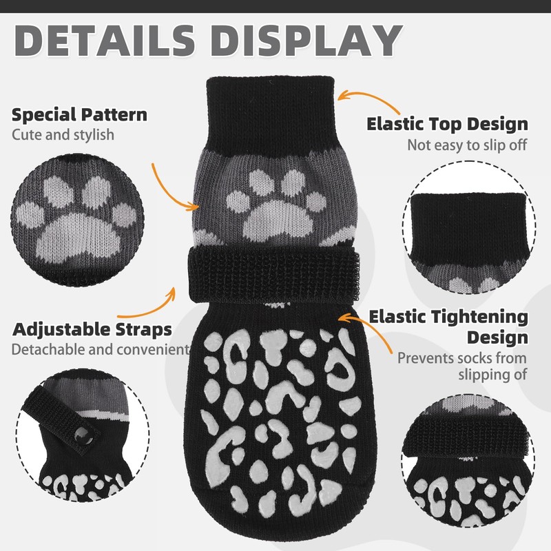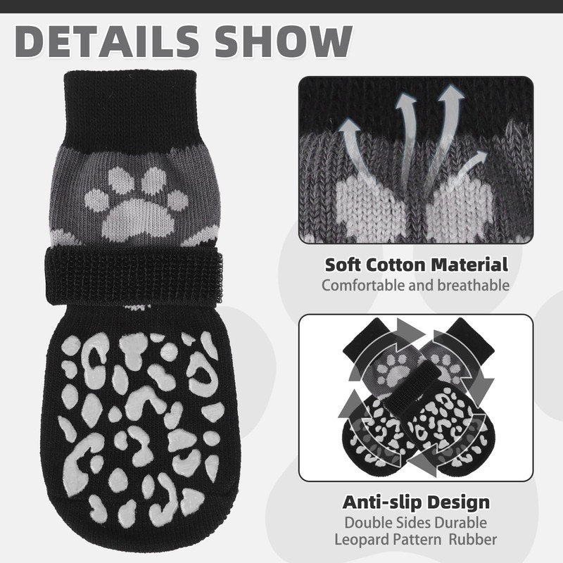 - DOUBLE SIDED NON-SLIP: Each side of the sock has the grip, which provides additional traction when your dog walks on a smooth floor. Even if the socks are twisted, they can still work. In addition, the design of the double-sided grip ensures a longer lifespan of the socks. When the grip on one side is worn and has no anti slip effect, it can cause the dog to wear on the other side, exerting a new anti slip effect.