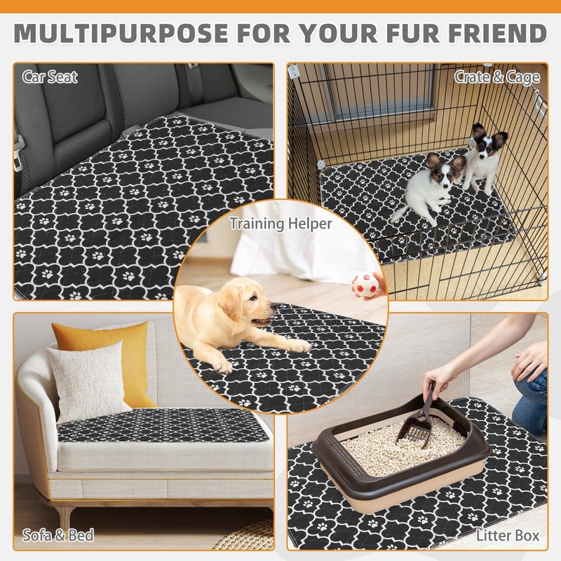 - SUITABLE FOR MULTIPLE OCCASIONS: It can be a wee wee pad for dogs, it can be a whelping pad for dogs, and of course, it also can be used as a puppy training pad. It can also be used when your pet is eating or drinking to keep the floor clean as a food mat. It can be put on the playpen, dog crate, home floors, bed, sofa, car seat, and other places to give all-around protection.