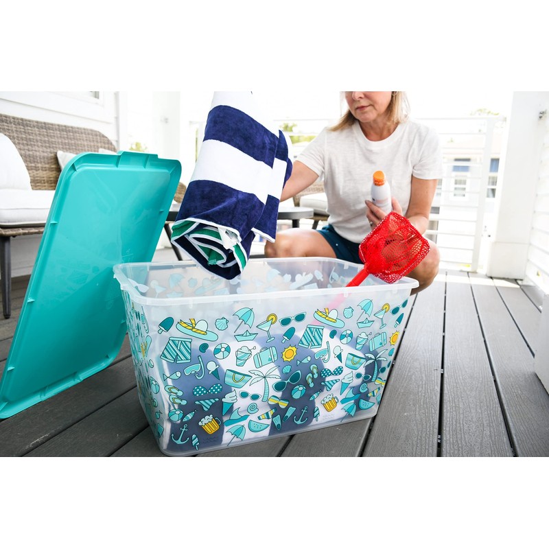 - 14.5 GALLON CAPACITY: Measure 24” x 17” x 13” each with a large 14.5-gallon (58-quart) capacity to maximize storage space. You get four times the storage! Each set includes 4 Summer clear printed totes and 4 lids.