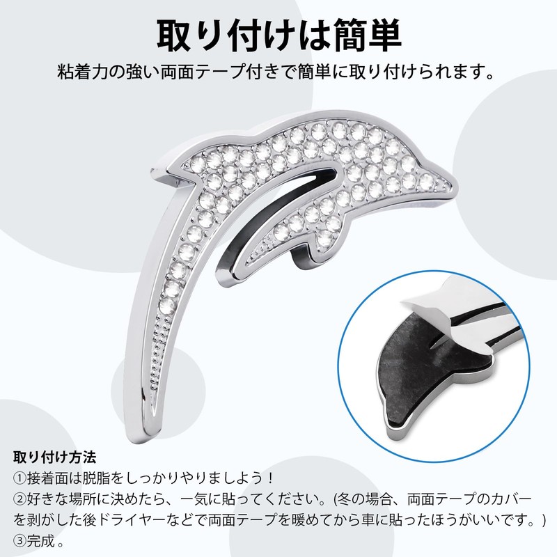 - 【Enhance Your Personality】This emblem incorporates the elegance and vitality of the dolphin in the design, while the flowing lines bring life to your vehicle. Simple and stylish silver type and bling rhinestone type, add personality and glamour to your car and make you eye catching