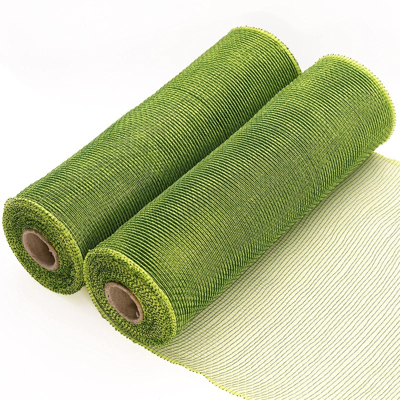 Koopi Deco Mesh 10 inch x 10 Yards Each Roll, Set of 2 Moss & Apple Green Poly Mesh Ribbons for Wreaths, Swags, Craft, Party and Decorating Supplies- 2 Rolls