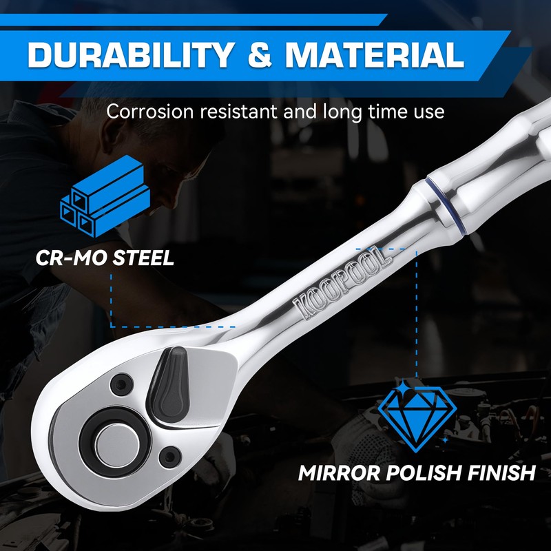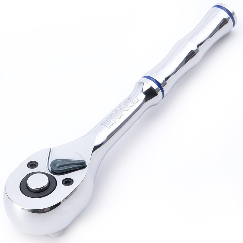 KOOPOOL 1/4 Inch Drive Ratchet, 72-Tooth Quick-Release Ratchet Wrench, 5-Degree Swing, Reversible Socket Wrench, Chrome Alloy Made, Full Polished