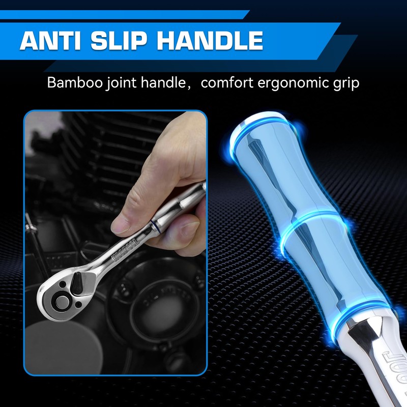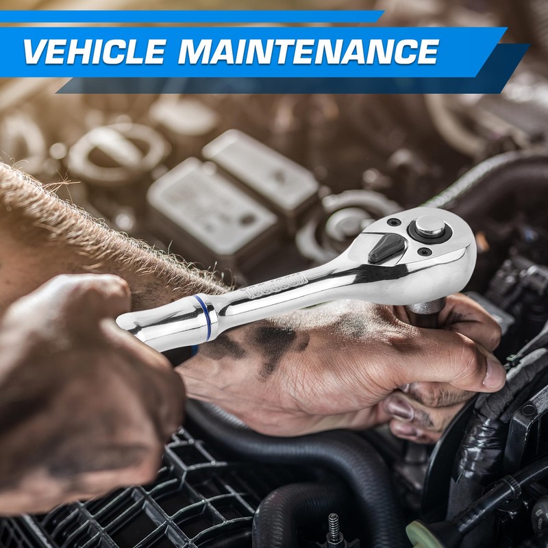 - Anti-Slip Handle: Ratchet wrench designed with an ergonomic, anti-slip handle, this 1/4 socket wrench provides a secure and comfortable grip. It well for home maintenance and car or truck repair while reducing hand fatigue and slippage