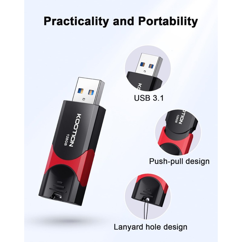 KOOTION 128GB USB Thumb Drive 3.1 Flash Drive Ultra High Speed up to 150MB/s, Retractable Memory Stick, 128G External Solid State Flash Drive