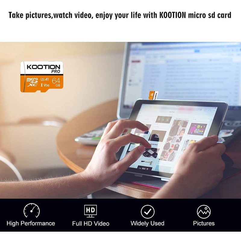 KOOTION 64 GB Micro SD Card, 4K Camera Pro, UHD Video for GoPro, Action Camera, Drone, Smartphone, R/W up to 90/35 MB/s MicroSDXC Memory Card UHS-I U3 A1 V30