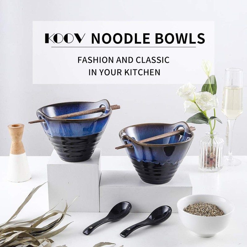 - 【HEALTHY AND DURABLE PORCELAIN】: KOOV porcelain ramen bowl set insists on using the top grade porcelain, a type of premium lead-free ceramic, safer and more elegant for you and your families.