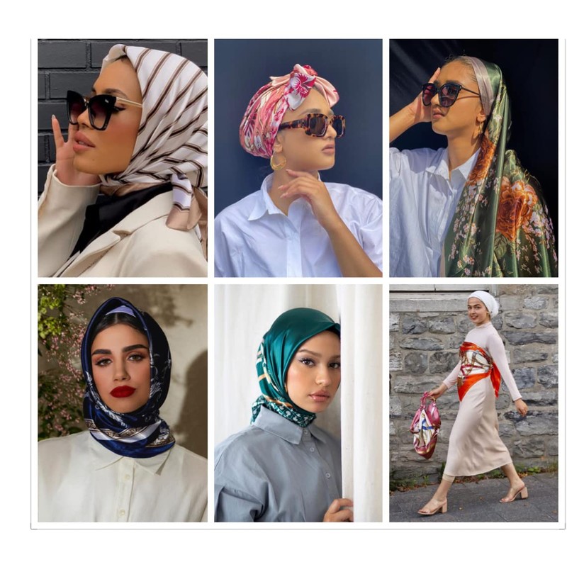 KOOYOL Silk Like Headscarf Vabovin Fashion Pattern Large Square Satin Scarf for hair wrapping