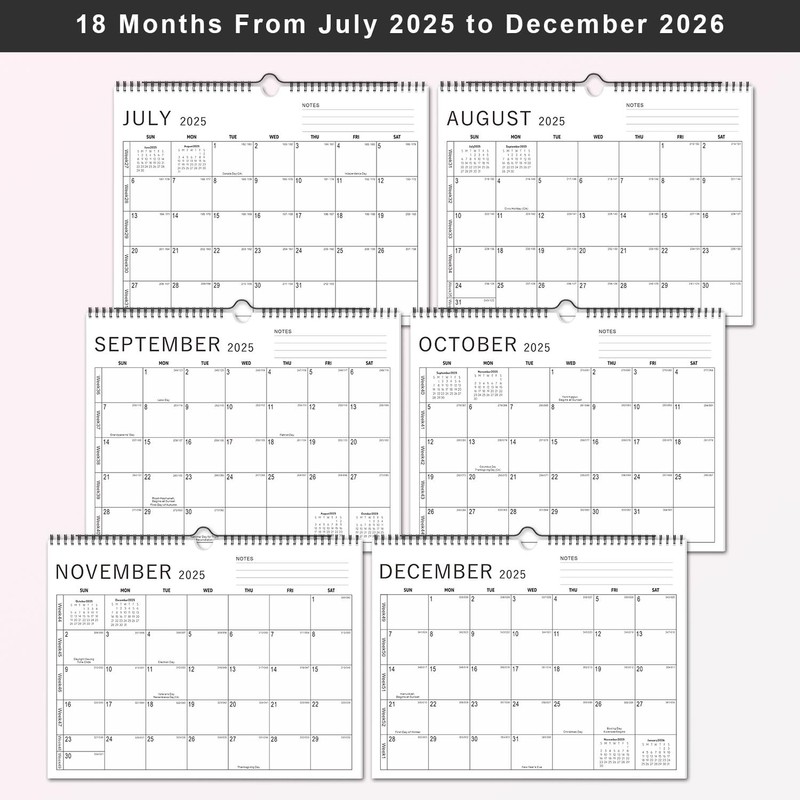 - 18 Months Wall Calendar - Wall Calendar 2025-2026 from July 2025- December 2026. Convenient preview of last months and next month displayed at every page, it's the perfect desk accessory for staying on top of your school or home life.