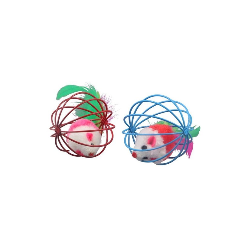 - The artificial mouse is in the cage, which increases the fun. Bring these ball toys home to your cat quickly. Suitable for small and medium-sized cats.