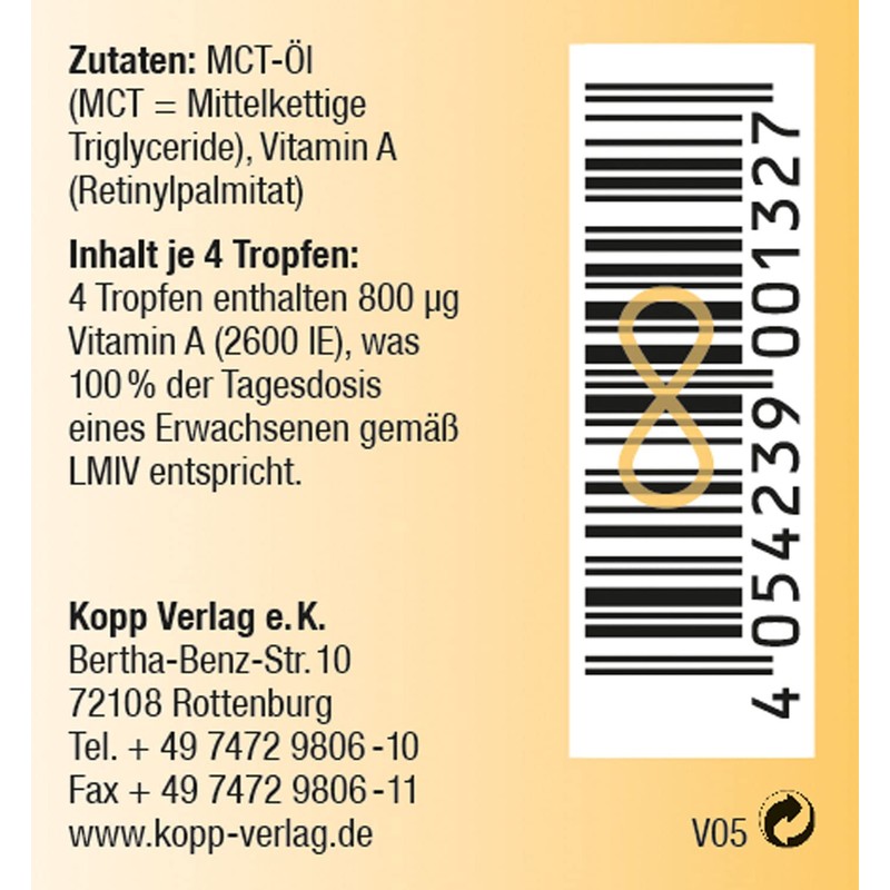 KOPP Vital® Vitamin A Tropfen - 30 ml | 4 Tropfen enthalten 800 µg Vitamin A | enthalten jetzt MCT-Öl aus Kokos | Vegan | Familienpackung mit ca. 250 Portionen | Apothekenqualität