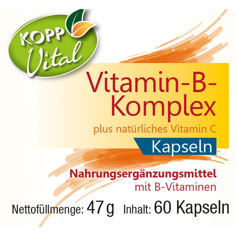 KOPP Vital® Vitamin B Complex Capsules, 47 g, 1 x 60 Capsules, Vegan, Plus Vitamin C, Pharmacy Quality