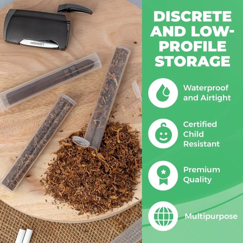 - Waterproof and Airtight 💦- These airtight containers are ideal for keeping your rolled cigarettes dry and fresh. The squeeze top ensures nothing gets in or out, making it an ideal natural herb holder. It's also a smell proof container, perfect for travel as they keep your bag odor-free.