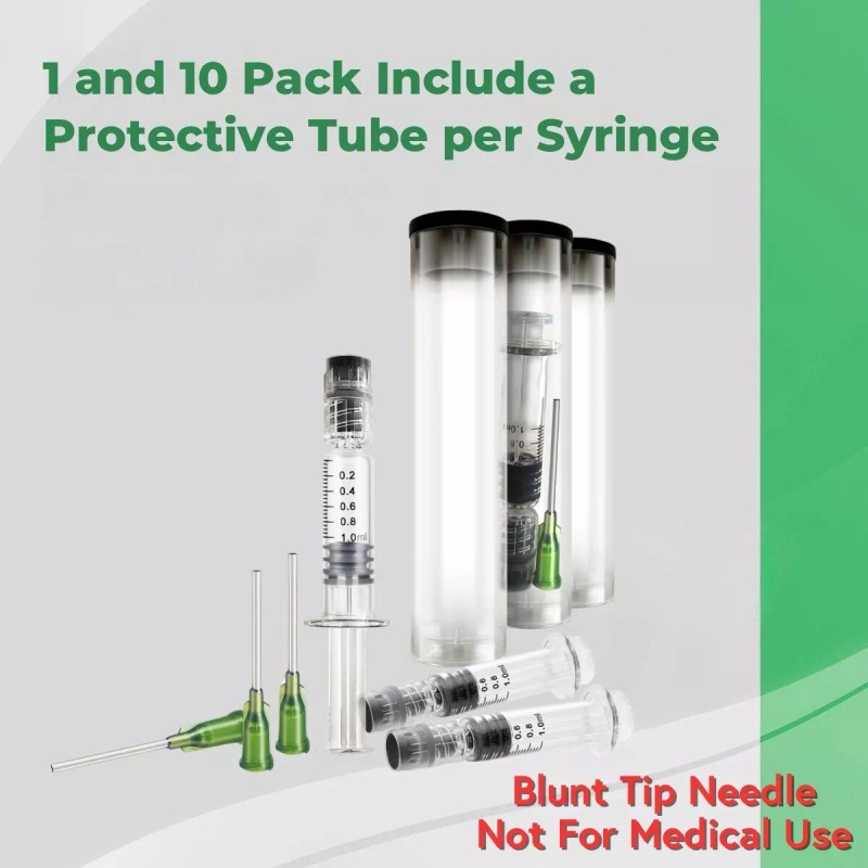 - Convenient Syringe Kit 📦- Each of our 1ml syringes comes with a 14 Ga blunt tip, (1 blunt tip per oil syringe), making it easy to refill cartridges or apply glue. Additionally, the 1 & 10 pack of syringes are packed in & include 1 protective tube per syringe. The blunt tip allows a mess-free transfer, refill, and measurement of liquids.