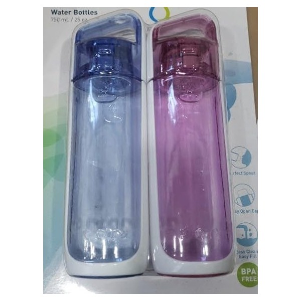 • CAPACITY: Set of two 25-ounce (750ml) water bottles in attractive blue and lavender colors for daily hydration needs