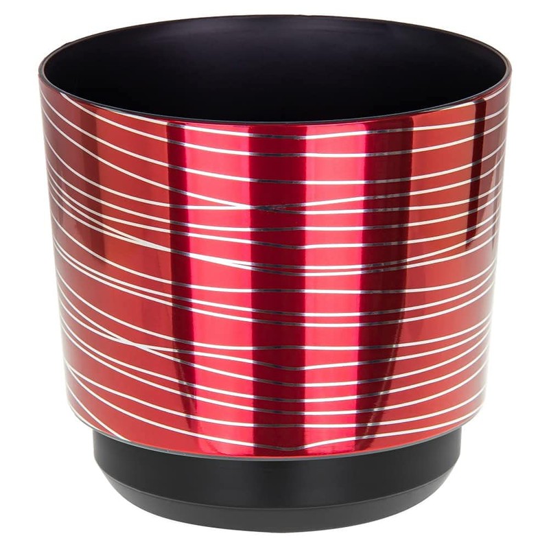 KORAD Red with silver strips plastic round indoor flowerpot with saucer and drainage holes small (height: 18 cm- 7 inches) 4.76 inches -