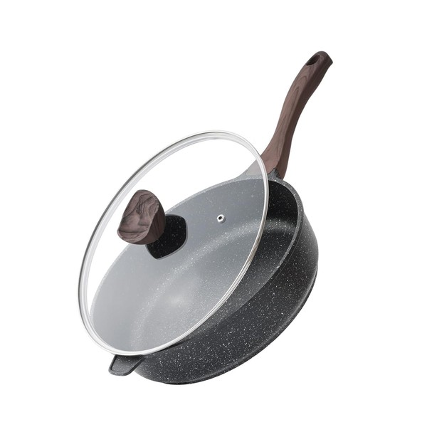 - 【Premium Non-Stick Coating】: Our sauté pan features a safe and healthy non-stick coating, SGS approved, and free from PFOA. Enjoy effortless cooking with minimal oil for a healthier diet. The granite non-stick coating ensures a smokeless and safe cooking experience.