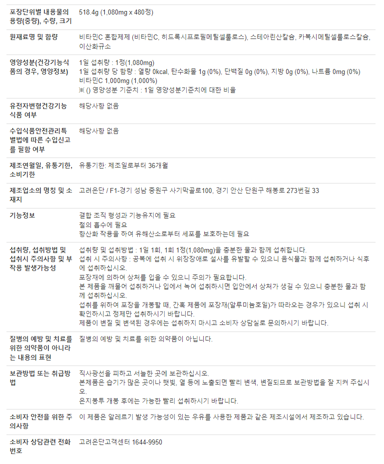 - 원(재)료명 및 함량: 상품상세참조 / 상품상세참조
