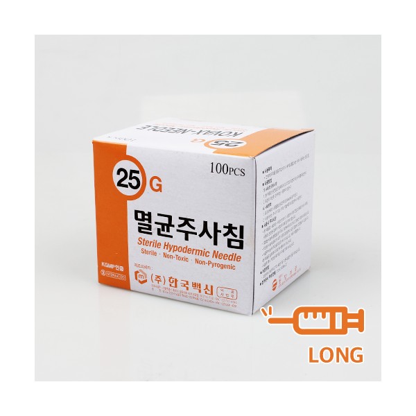 Korea Vaccine) Disposable needle 25G*38mm(1) Long / 100 pieces / 한국백신) 일회용주사침 25G*38mm(1) Long / 100개입