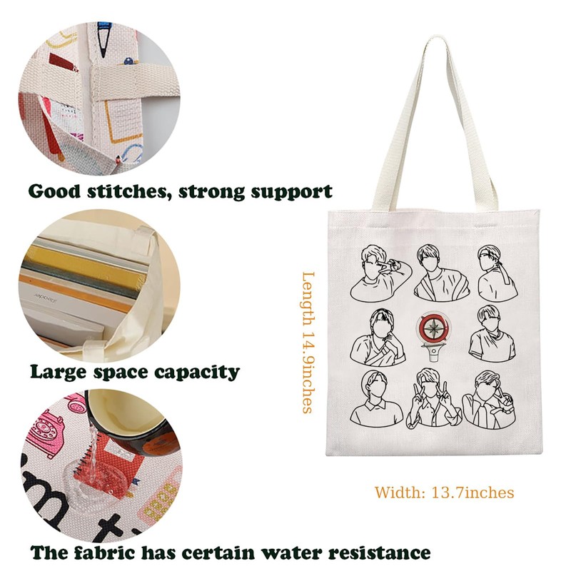 - 1.Good quality : This canvas bag is made of cotton material, which is sturdy sewing, resistant to deformation and tearing, soft and durable. And has a certain waterproof effect, can be used for a long time.
