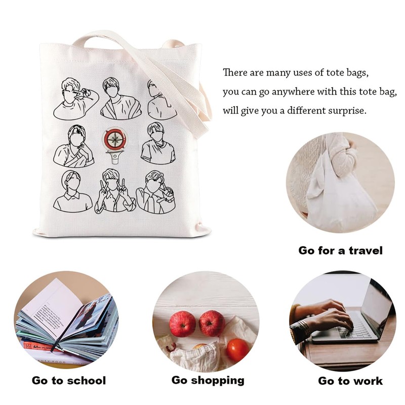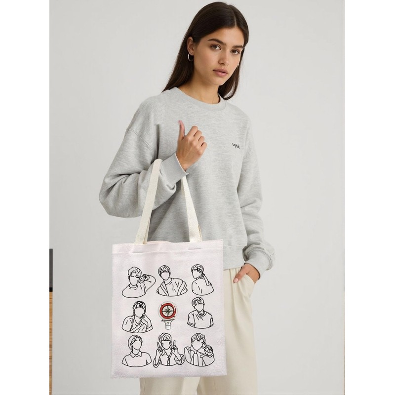 Korean Boy Group Merchandise Tote Bag Kpop Music Lovers Shoulder Bag SKZ Member Character Album Gift Stray Fans Gift (CA-StrayK GroupTote)